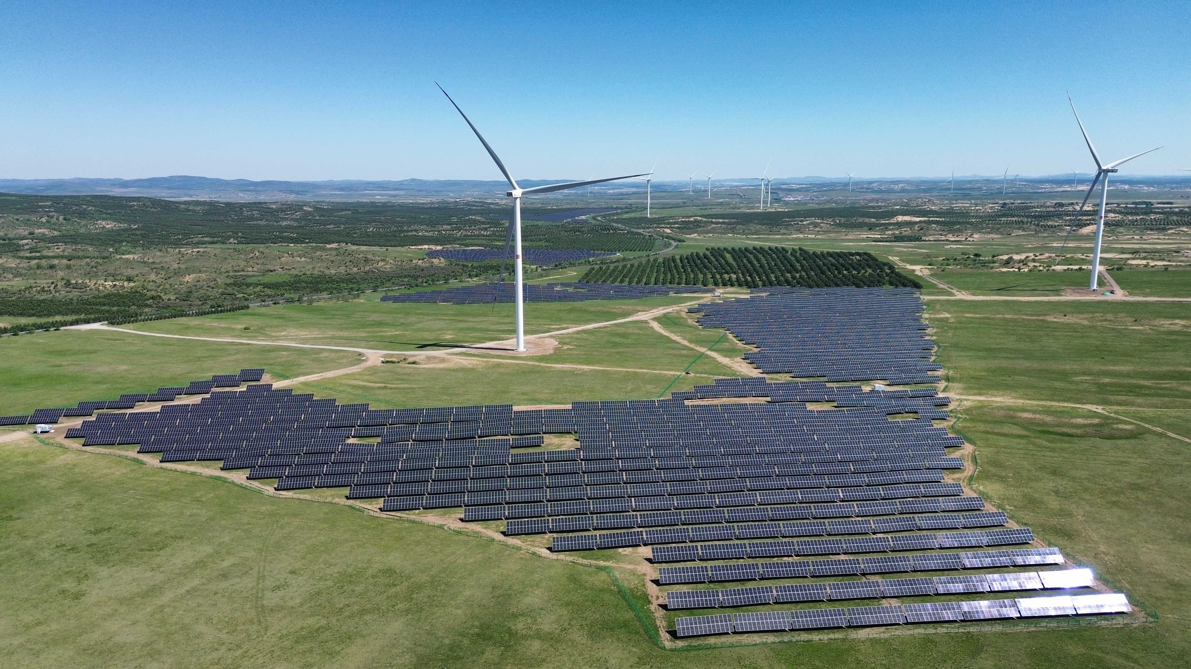 新能源分公司先后建成風(fēng)電及光伏項(xiàng)目224個(gè),總?cè)萘?1948MW,其中建成光伏項(xiàng)目33個(gè),容量1566MW;建成風(fēng)機(jī)機(jī)組4152臺。在建新能源項(xiàng)目25個(gè),其中EPC風(fēng)電項(xiàng)目2個(gè),容量100MW,EPC光伏項(xiàng)目7個(gè),容量457MW。送變電工程公司在建光伏項(xiàng)目4個(gè),容量420MW;在建風(fēng)電項(xiàng)目2個(gè),容量74.5MW,風(fēng)機(jī)機(jī)組22臺。